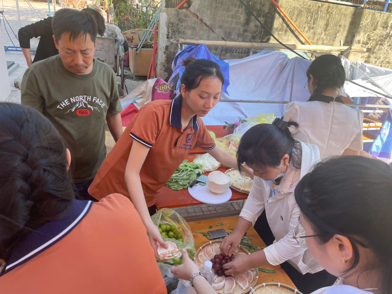 Mâm cỗ đầy ắp bánh kẹo, hoa quả được các em chia sẻ, thưởng thức và cùng nhau kể chuyện, hát ca.